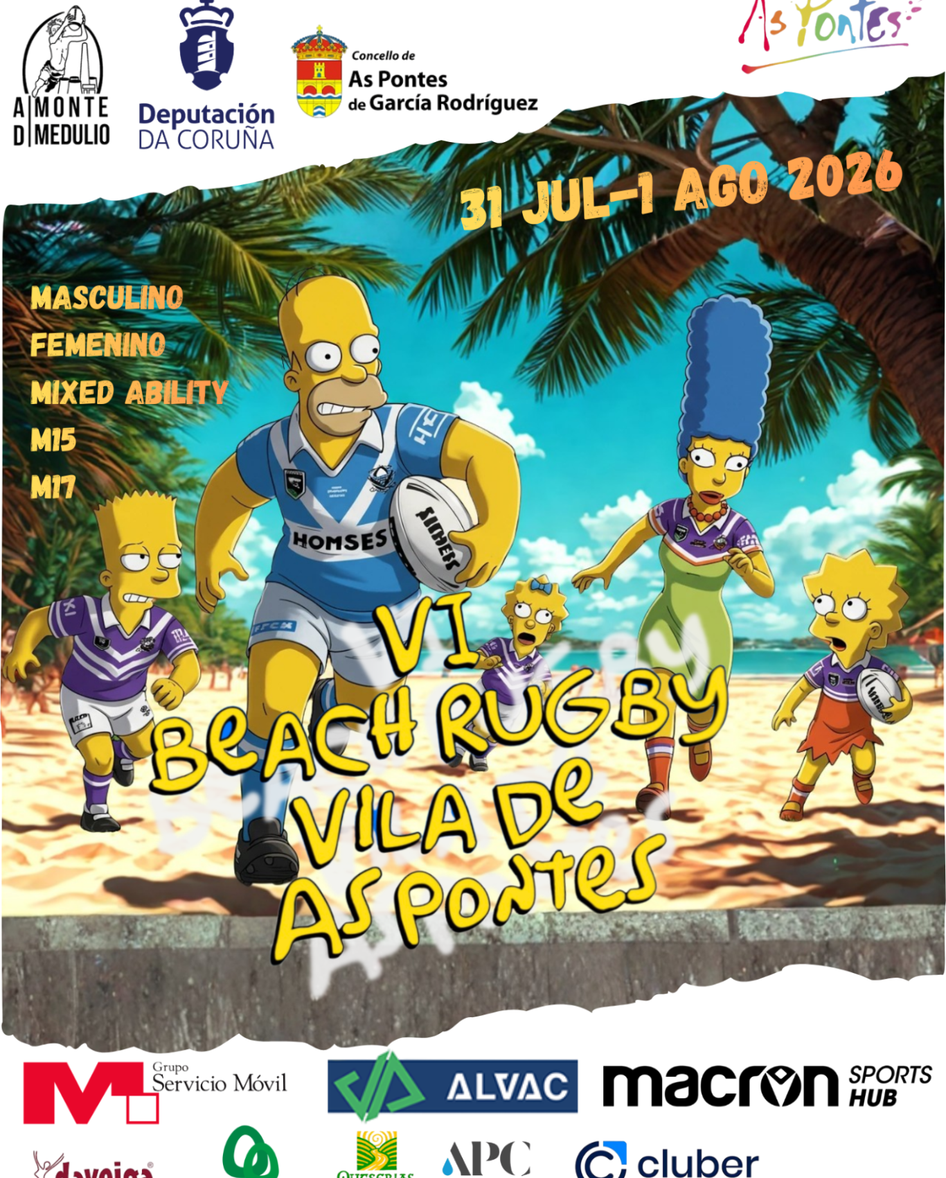 El Beach Rugby Vila de As Pontes nació como un evento deportivo organizado por la Asociación Deportiva Monte Medulio y el Club de Rugby Fendetestas en colaboración con el Concello de As Pontes y la Diputación de A Coruña , con el propósito de promover el rugby playa a nivel estatal y convertir el entorno del Lago de As Pontes en un referente deportivo nacional.